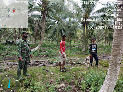 Babinsa melaksanakan patroli karhutlah di Jalan SP 6 Desa Intan Wonosari di Kecamatan pelangiran Kab.Inhil yang sebahagian merupakan areal perusahaan