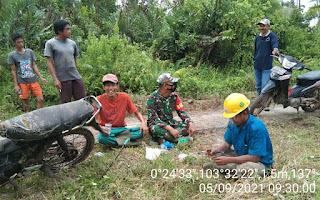 Serda Siswanto Babinsa Koramil 11/Pulau Burung Kodim 0314/Inhil bersama warga Rembuk Bersama Bahas menjaga kebersihan lingkungan Minggu  (05/08/9/2021)