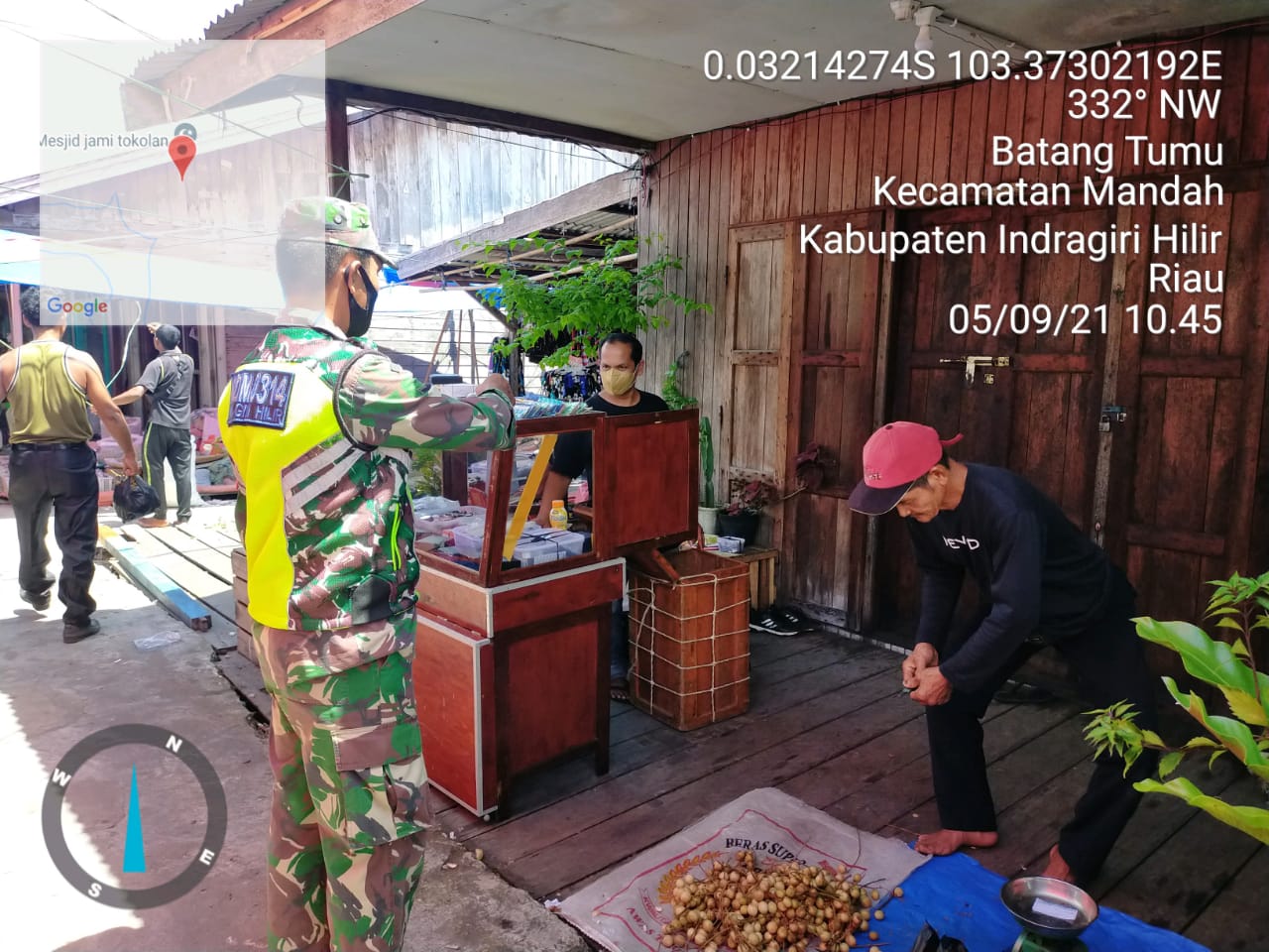 SERIBUPARITNEWS.COM, Babinsa Koramil 08/Mandah 0314/Inhil Serda Tulus Lumban Gaol melaksanakan Penegakan disiplin protokol kesehatan covid dengan sasar para pedagang minggu (09/09/2021)