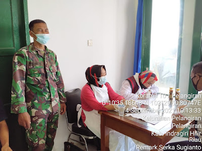 Pjs.Danramil 10/Pelangiran Kodim 0314/Inhil  Pelda Wagianto  Pimpin Langsung Serbuan Vaksinasi Dosis II Sabtu (04/09/2021)