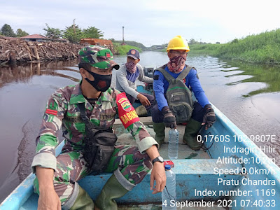Pratu Candra Winata Babinsa Koramil 05/Gas Bersama RPK Perusahaan melaksanakan monitoring  Lahan Konsesi  tersebut  dari Karhutlah  lintas Perairan  Sabtu  (04/09/2021)