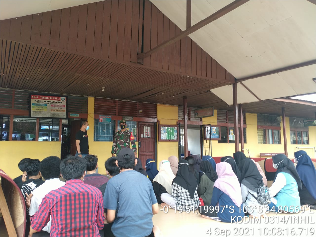 Sertu Masri Babinsa Koramil 01/Tembilahan Kodim 0314/Inhil Laksanakan Komsos kepada Majelis  Guru dan Siswa siswi SMAN 1 Tembilahan di Jalan Sapta Marga Tembilahan Hulu Sabtu (04/09/2021)