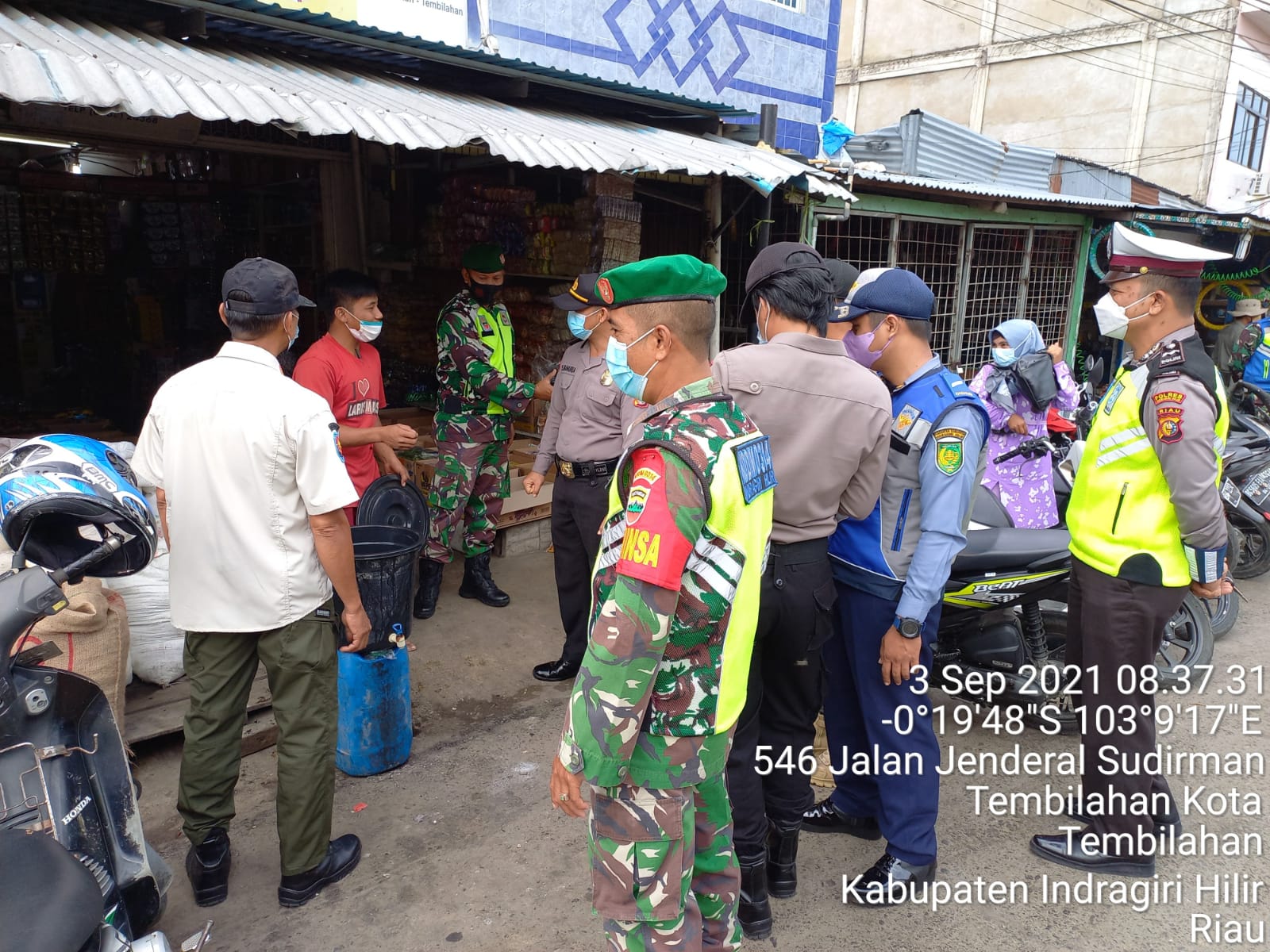 Sertu Zulfahri Babinsa Koramil 01/Tembilahan Bersama Tim Gugus Laksanakan Gakplin Protkes dan Penyekatan Mobilitas Masyarakat Jumat (03/09/2021