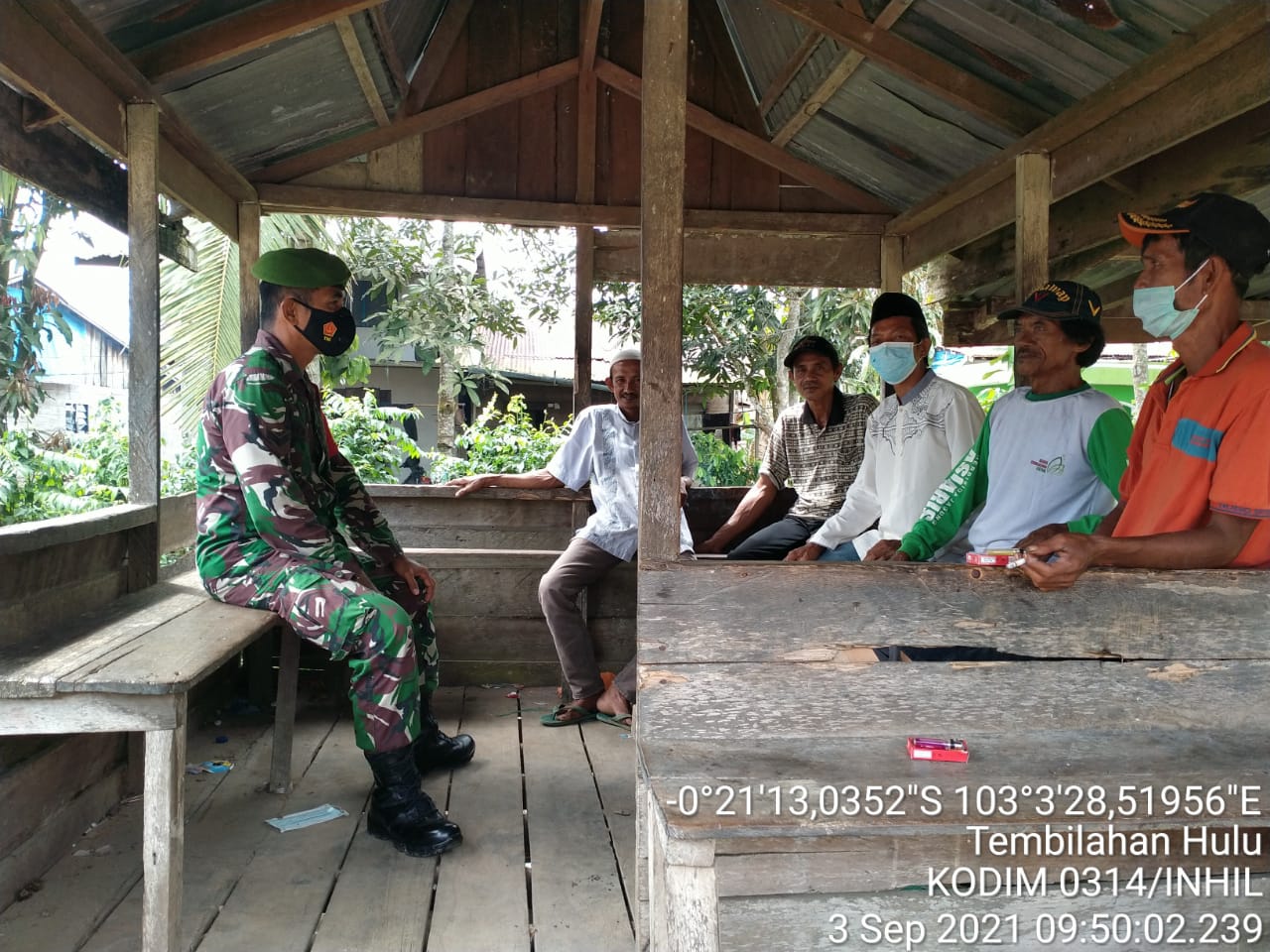 Babinsa mengajak dan menghimbau warga untuk menerapkan protokol kesehatan yang sudah dianjurkan oleh pemerintah (3M).