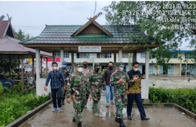 SERIBUPARITNEWS.COM, GAUNG ANAK SERKA - Dandim 0314/Inhil Letkol Imir Paisal  di dampingi oleh Danramil 05/Gas Lettu Selamet meninjau pelaksanaan bedah rumah di Desa Teluk pantaian Kec Gas, Kab Inhil Kamis (02/09/2021)
