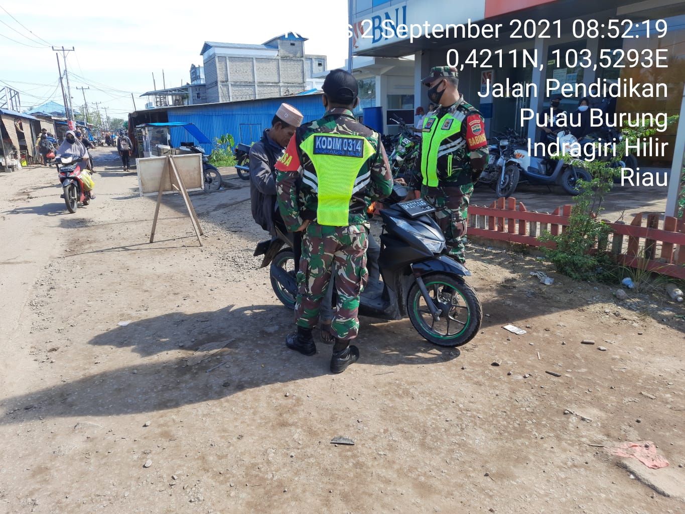 SERIBUPARITNEWS.COM, PULAUBURUNG - Upaya terus dilaksanakan Apter dalam penegakkan disiplin, Babinsa Pulau Burung Koramil 11/Pulau Burung Kodim 0314/Inhil Sertu Yanuarsyah bersama Tim  Melaksanakan sekat jalan dalam  Penegakkan disiplin  Protokol kesehatan Kamis (02/09/2021)