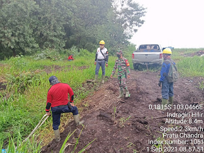 Pratu Candra Winata Babinsa Koramil 05/Gas Bersama RPK Perusahaan melaksanakan monitoring  Lahan Konsesi  tersebut  dari Karhutlah    Rabu    (01/09/2021)