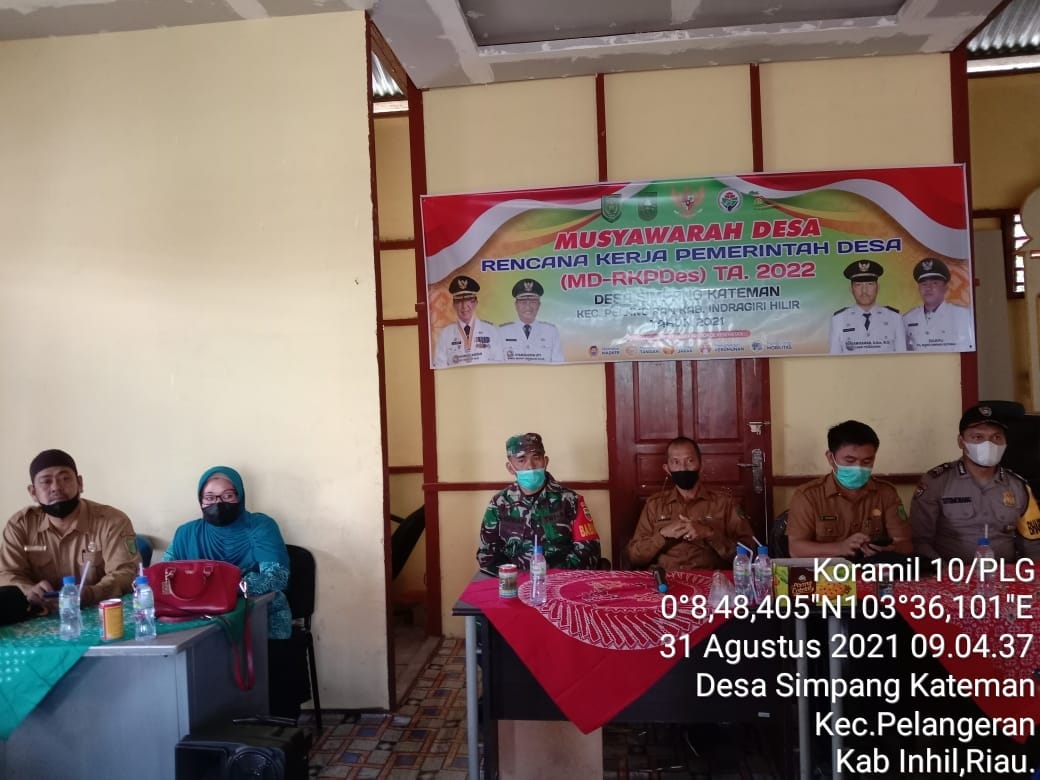 Kegiatan dilaksanakan di Kantor Desa Simpang Kateman kec. pelanggiran telah di laksanakan rapat (RKPDES) Tahun anggaran 2022.