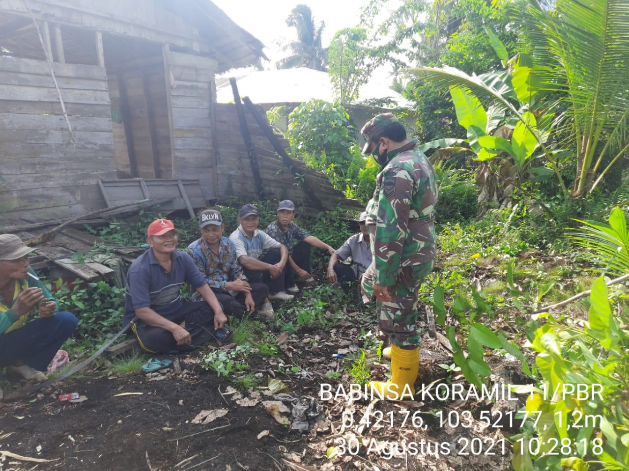 Sertu Yanuarsyah Babinsa Koramil 11/Pulau Burung Kodim 0314/Inhil sosialisasikan  pencegahan karhutlah di wilayah binaannya Senin  (30/08/2021)