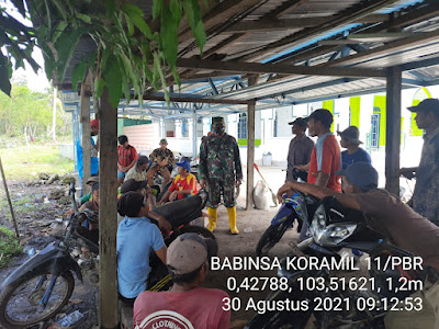 SERIBUPARITNEWS.COM,PULAUBURUNG - Sebagai Upaya penerapan Protokes dan Penegakkan disiplin Babinsa Pulau Burung Koramil 11/PBR Sertu Yanuarsyah Melaksanakan Komsos bersama  warga Senin (30/08/2021)