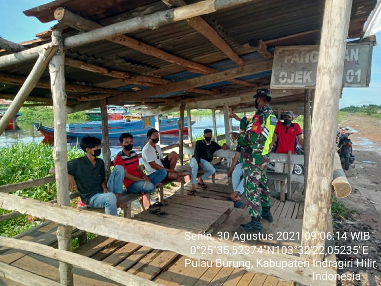 Serda Arlansyah  Babinsa Koramil 11/Pulau Burung Kodim 0314/Inhil Fokuskan Penegakkan Disiplin  Kepada warga di Pangkalan Ojek Seputar tembilahan Senin (30/08/2021)