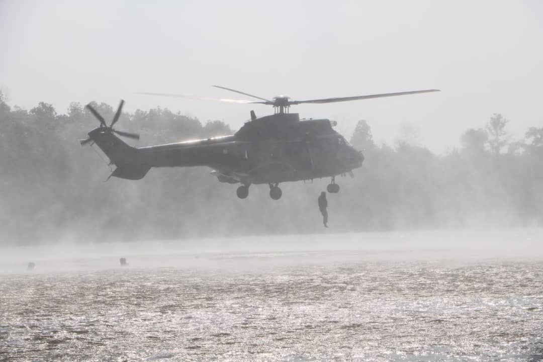 Lanud RSN Kerahkan Satu Unit Heli Super Puma dalam Latihan Penyelamatan Bersama dengan Basarnas