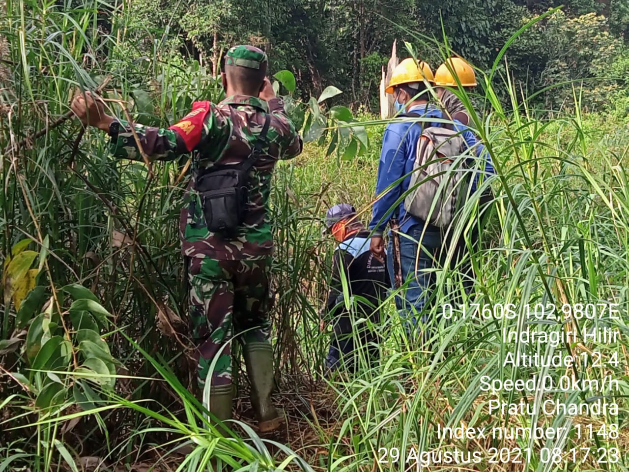 Pratu Candra Winata Babinsa Koramil 05/Gas Bersama RPK Perusahaan melaksanakan monitoring Lahan Konsesi tersebut dari Karhutlah dengan menyisir lahan semak belukar Minggu (29/08/2021)