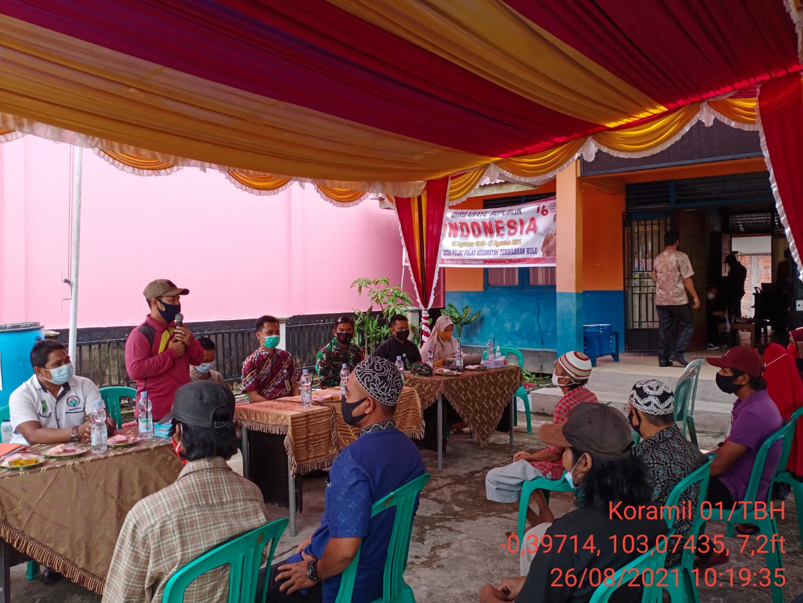 Bantuan diberikan untuk masyarakat yang terdampak pandemi Covid19 yang dilaksanakan di Gedung Serbaguna Jalan Merdeka Desa pulau palas Kecamatan Tembilahan Hulu. Kab. Inhil.