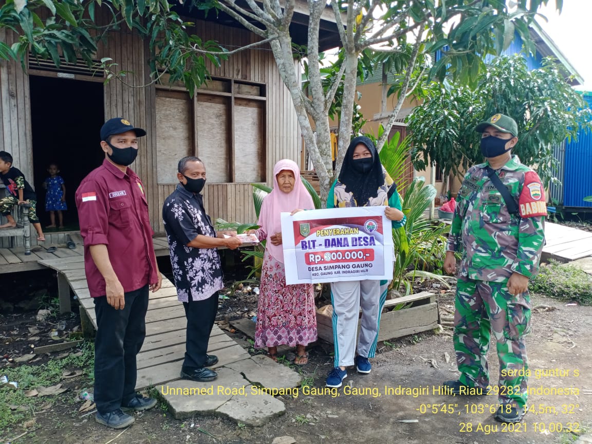 Babinsa Koramil 05/Gas, Serda Guntur.sempurna melaksanakan pendampingan penyaluran bantuan Langsung Tunai di Desa Simpang Gaung Kecamatan Gaung, Kab Inhil Sabtu (28/08/2021)