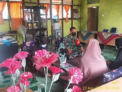 Guna melanjutkan program vaksinasi tersebut Serka Nawawi Babinsa Koramil 05/Gas Kodim 0314/Inhil Melaksanakan Komsos Bersama Majelis Guru Rencana Vaksinasi bagi siswa siswi sekolah yang ada di Desa Sei Iliran Kecamatan Gaung  Anak Serka Jumat (27/08/2021)