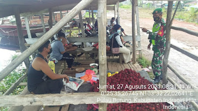 Serda Arlansyah  Babinsa Koramil 11/Pulau Burung Kodim 0314/Inhil Fokuskan Penegakkan Disiplin  Kepada Pedagang Kali Lima khususnya pedagang buah Jumat (27/08/2021)