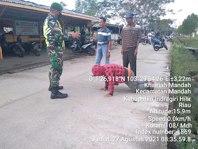 Praka Hendri Babinsa Koramil 08/Mandah Kodim 0314/Inhil tetap  Melaksanakan Penegakkan Disiplin  di Kelurahan Khairiah Mandah Kecamatan Mandah Jumat (27/08/2021)