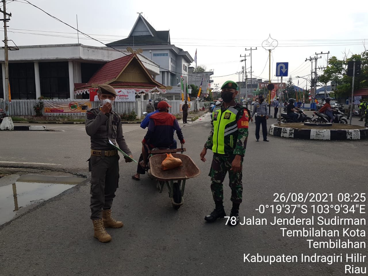 SERIBUPARITNEWS.COM, TEMBILAHAN - Sebagai Upaya Pencegahan Covid -19 terhadap pengguna jalan, Anggota Koramil 01/Tembilahan Kodim 0314/Inhil Kopda Komarudin melaksanakan Pengamanan kegiatan Penegakkan disiplin Protokol kesehatan Kamis (26/08/2021)