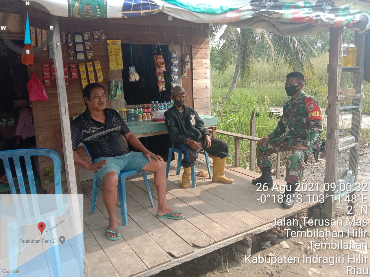 Pelda Jaharzam Babinsa Koramil 01/Tembilahan Laksanakan Komsos Terpadu kepada Tokoh masyarakat  an M Nur 60 thn Rt 04 dan RW 05  Jalan Terusan Mas  parit 21 Kelurahan Tembilahan Hilir Kamis (26/08/2021)