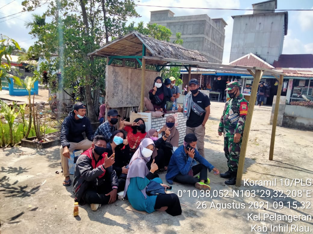 Serda Dodi Eka Putra Babinsa Koramil 10/Pelangiran Kodim 0314/Inhil menghampiri dan memberikan himbauan dalam menerapkan protokol kesehatan Kamis (26/08/2021)