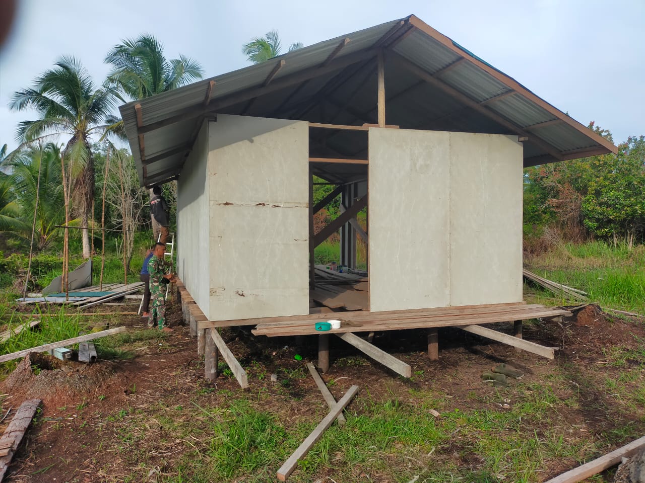 Serda Tulus Lumbangaol Babinsa Koramil 08/Mandah Kodim 0314/Inhil melanjutkan Pembangunan Rumah Warganya yang kurang mampu