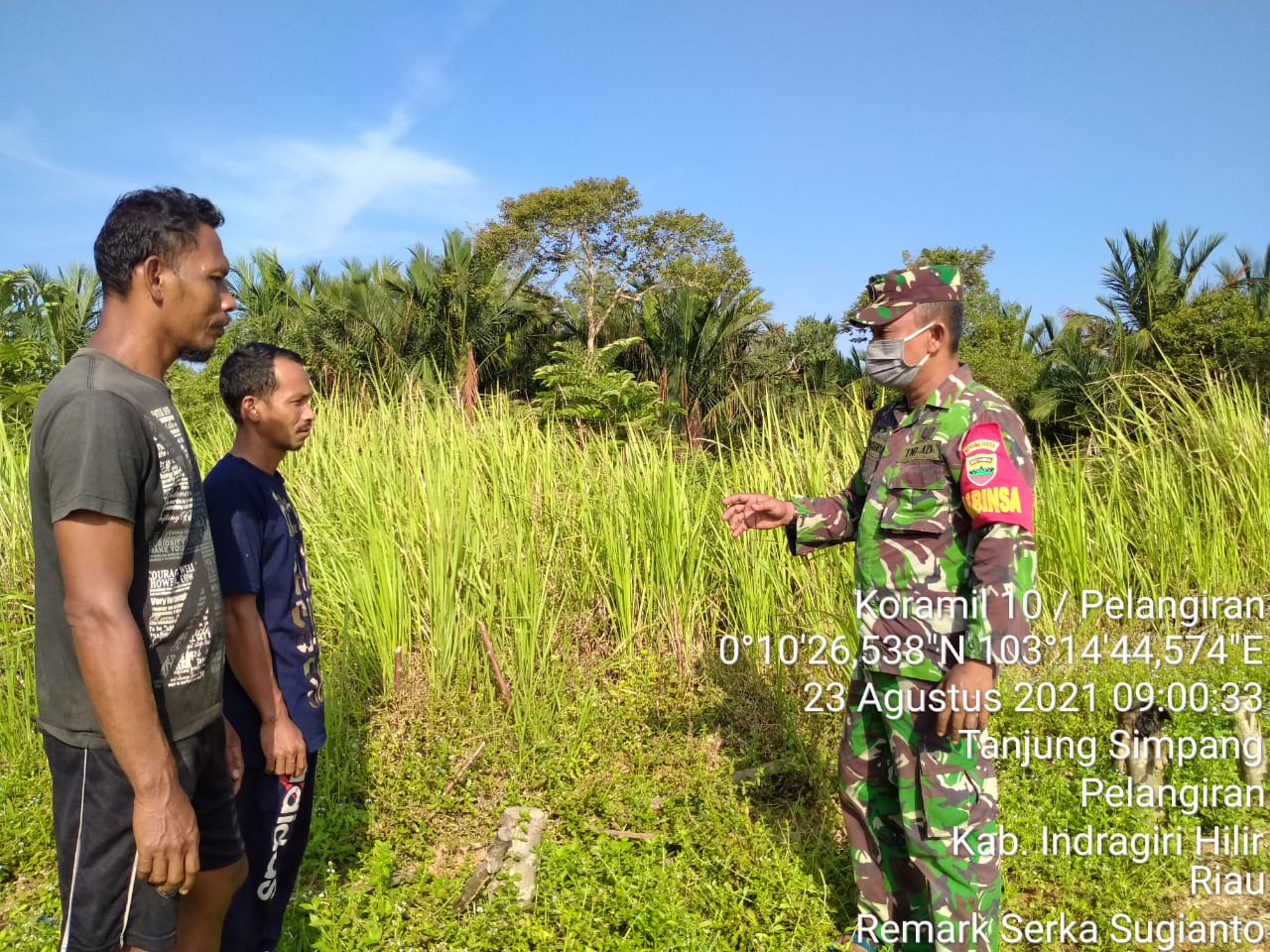 Babinsa memastikan bahwa wilayah patrolinya tidak terjadi karhutlah dan memastikan warga tidak membakar lahan di dalam kawasan area patrolinya