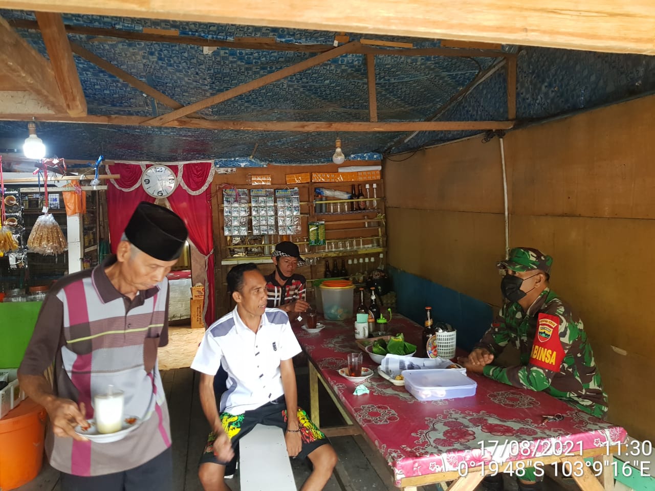 Babinsa melaksanakan Komsos di salah satu kedai dan warung kopi bersama bapak turisman di Warung Kopi Bu Ipat Jalan Jenderal Sudirman Kelurahan Tembilahan Kota Kecamatan Tembilahan