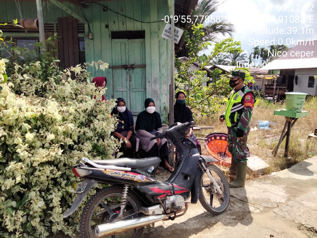 Babinsa menghimbau warganya tetap melaksanakan protokol kesehatan dengan tetap memakai masker,menjaga jarak dan menghindari kerumunan