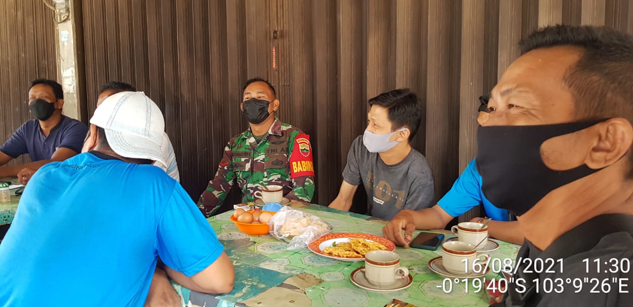 SERIBUPARITNEWS.COM,TEMBILAHAN - untuk menjalin komsos dengan serikat Pekerja transportasi darat Babinsa Koramil 01/Tembilahan Kodim 0314/Inhil Kopda Kamarudin  melaksanakan Komsos bersama Ketua Federasi serikat Pekerja Transportasi Darat  (FSPTD) Salmon Senin (16/08/2021)