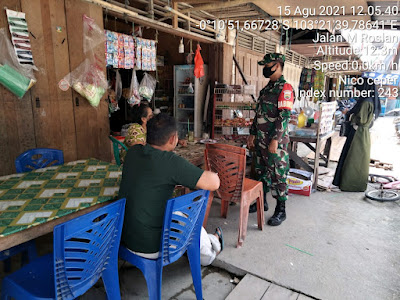 Seperti hari ini Babinsa Koramil 05/Gas, Praka chandra  melaksanakan penegakan protokol kesehatan kepada warga agar dan memantau pelaksanaannya di pasar Teluk Pinang Kecamatan Gaung Anak Serka Minggu (15/08/2021)