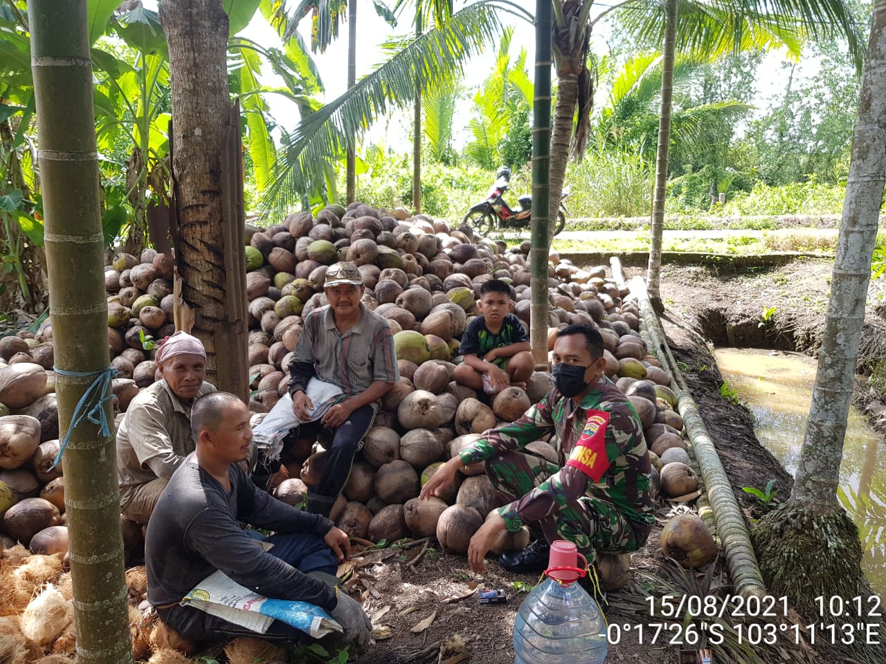Di Minggu ini Babinsa Koramil 01/Tembilahan Kodim 0314/Inhil Kopda Kamarudin melaksanakan Komsos bersama Petani Kelapa Wahyudi Minggu (15/08/2021)
