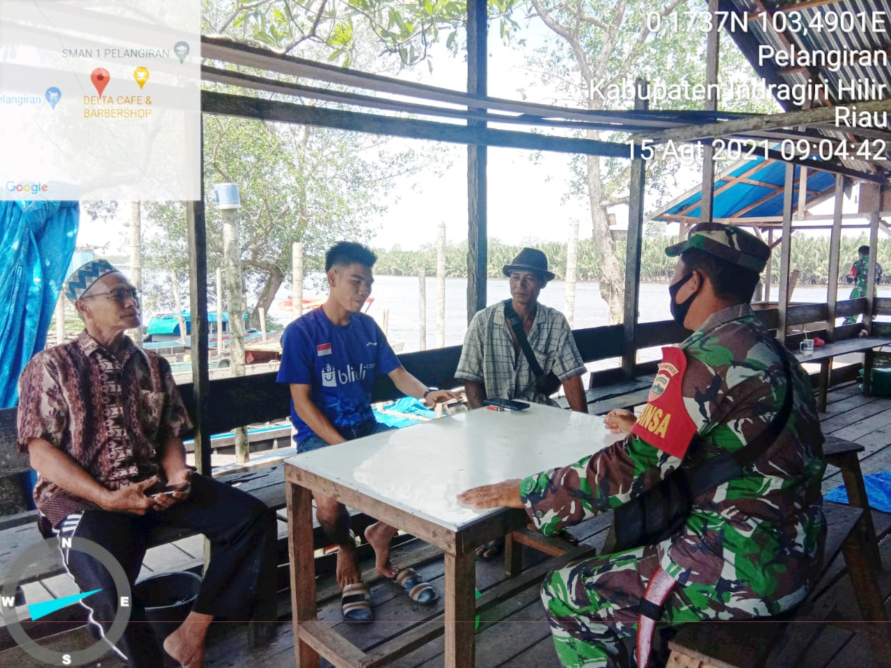 SERIBUPARITNEWS.COM,PELANGIRAN - Peran Apter dalam menegakkan protokol kesehatan terus dilaksanakan, seperti hari ini  Serda Erik Arianto Sibarani Babinsa Koramil 10/Pelangiran Kodim 0314/Inhil Melaksanakan Pengawasan Protokol Kesehatan dan komunikasi Sosial  bersama RW 02 Alwi dan Masyarakat Minggu (15/08/2021)