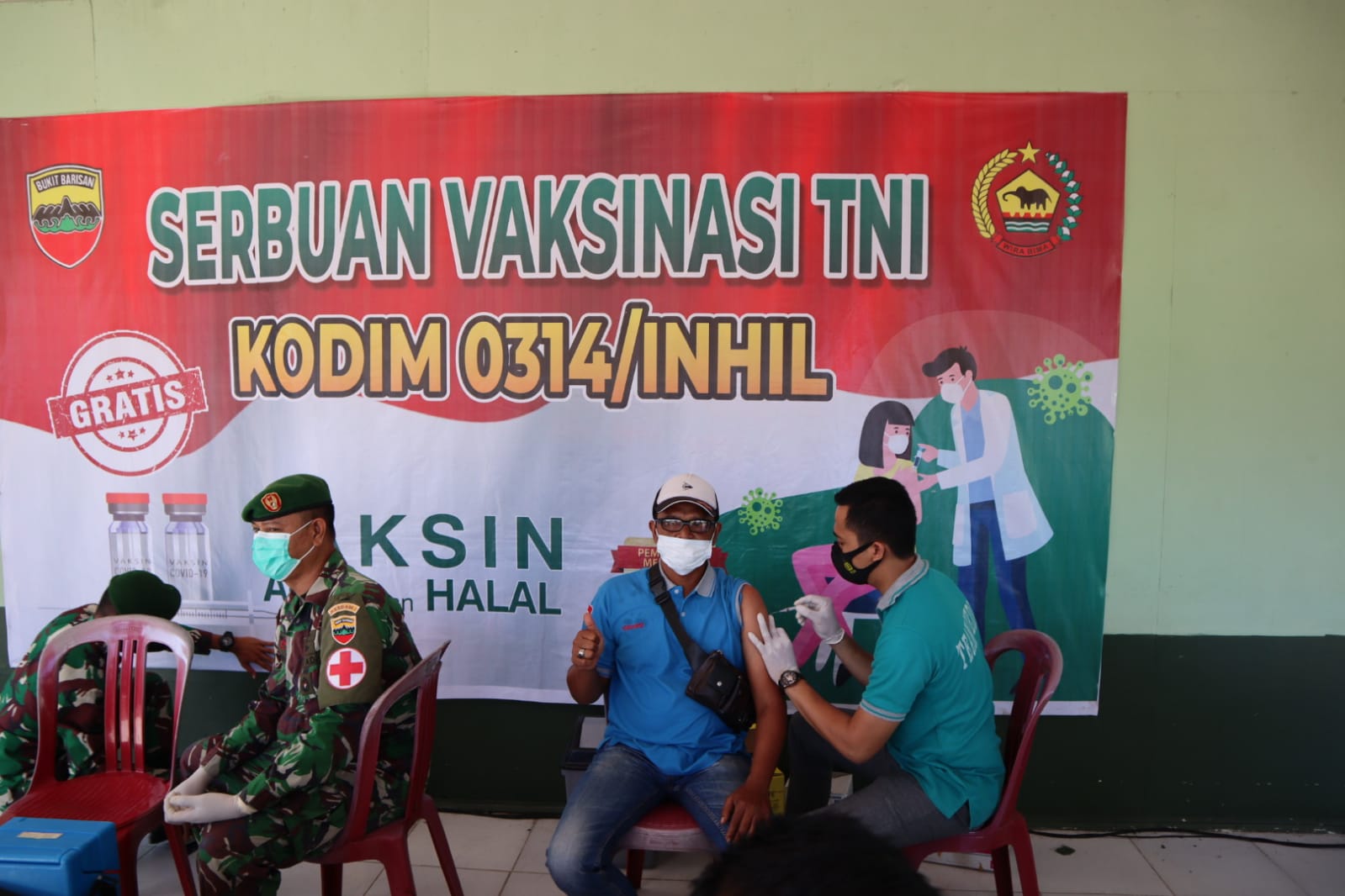 "Pelaksanaan vaksinasi ini merupakan upaya TNI khususnya Kodim 0314/Inhil yang berada di Kabupaten Inhil untuk membantu pemerintah daerah dalam mensukseskan pelaksanaan vaksiasi yang di Programkan Pressiden RI agar masyarakat Indonesia, baik di kota/kabupaten, kecamatan, kelurahan dan desa dapat melaksanakan vaksinasi Dosis Satu maupun Dosis Dua," tutur Kapten Inf Tarmizi.