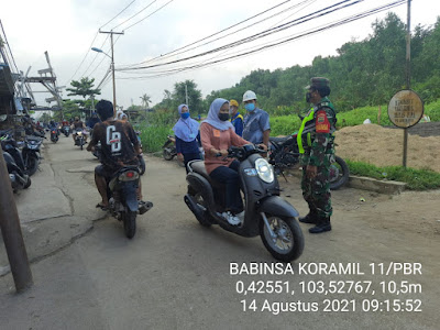 SERIBUPARITNEWS.COM, PULAUBURUNG - Sebagai Upaya dalam penerapan Protokol kesehatan, Sertu Januarsyah Babinsa Koramil 11/Pulau Burung Kodim 0314/Inhil bersama Tim Melaksanakan Penegakan Disiplin Terpadu Protokol kesehatan