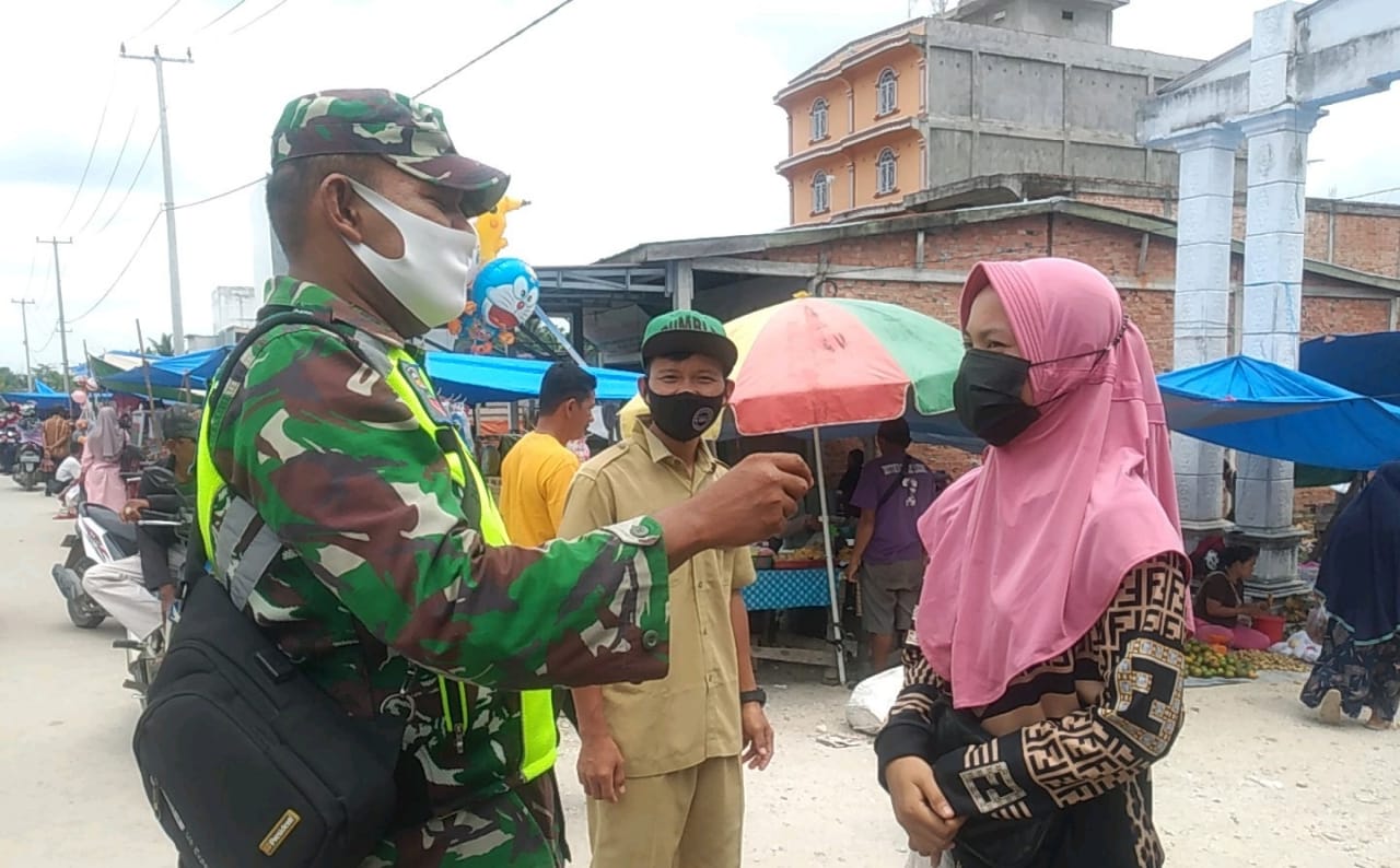 Babinsa  Koramil 08/Mandah Kodim 0314/Inhil Peltu HS Sirait melaksanakan kegiatan Penegakkan disiplin  Protkes terpusat Sabtu (14/08/2021)