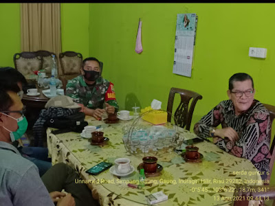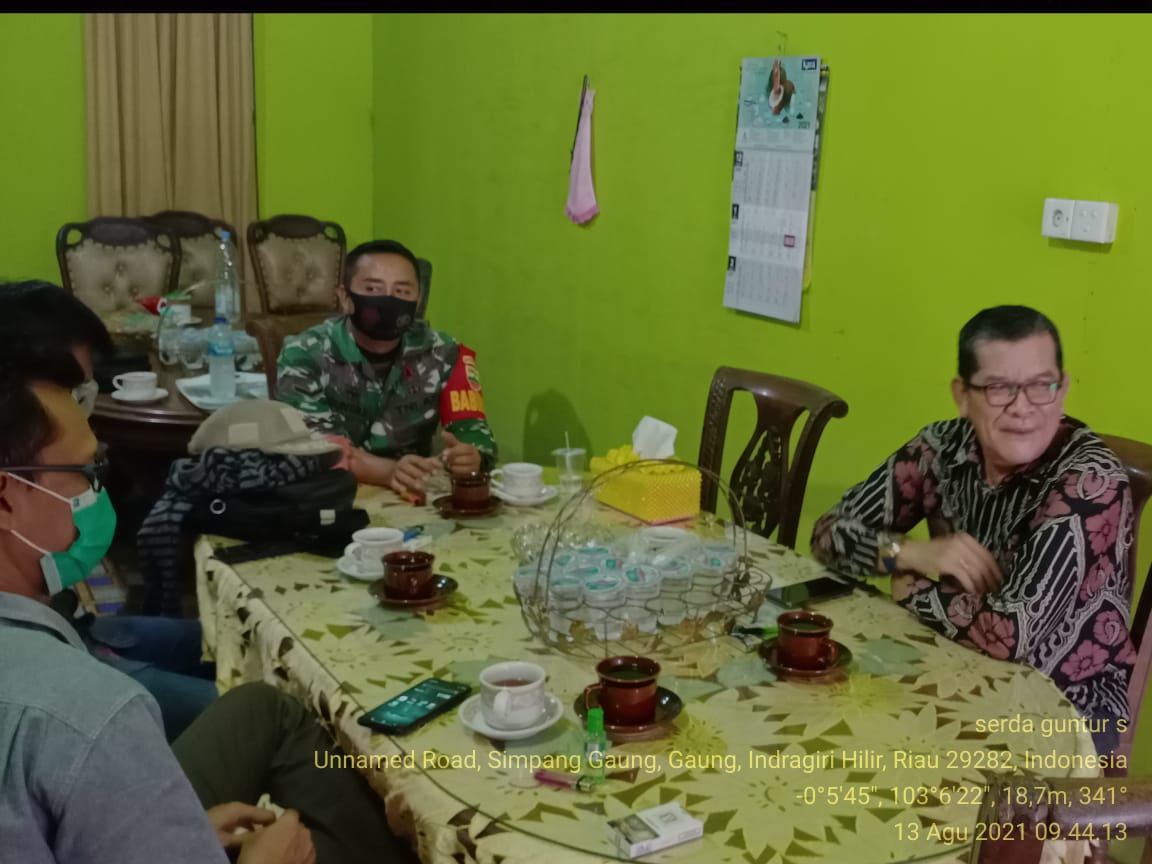 Sembari Coffee Morning,Sertu Guntur Sempurna Babinsa Koramil 05/Gas Kodim 0314/Inhil Silaturahmi dengan Tomas Setempat di Desa Simpang Gaung kecamatan Gaung Jumat (13/08/2021)