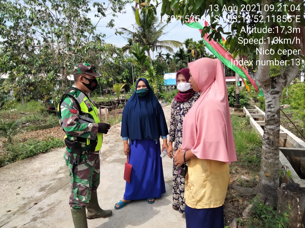 SERIBUPARITNEWS.COM, GAUNG ANAK SERKA - Sebagai Upaya Pencegahan dalam menekan laju penyebaran Covid -19, Babinsa Koramil 05/Gas,  Praka Niko Raswadi melaksanakan penegakan disiplin  protokol kesehatan  kepada Ibu ibu PKK yang melintas di jalan utama Jumat  (13/08/2021)