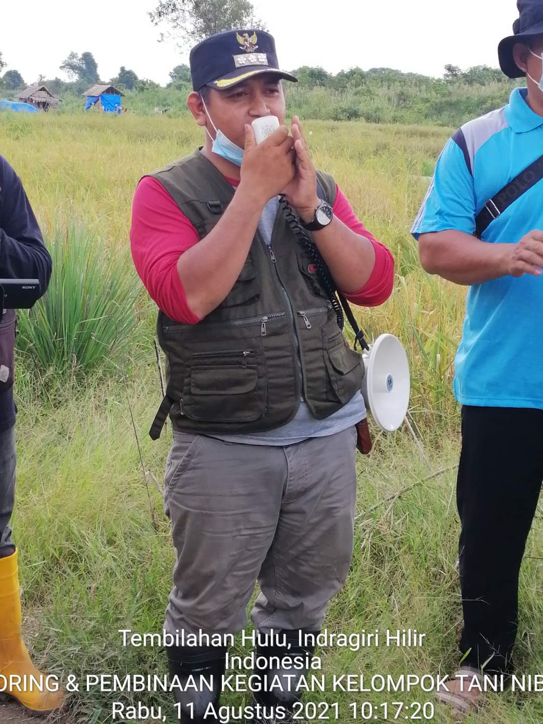 SERIBUPARITNEWS.COM, TEMBILAHAN - Kepala Desa Sungai Intan  Kecamatan Tembilahan Hulu Ahamad Efendi,S.Pdi panen padi bersama kelompok tani Nibung dan Sekaligus Monitoring dan Pembinaan  kegiatan P3A Intan berkah program padat karya P3 TGAI Kementerian PU BWS Sumatera III tahun 2021 di Desa Sungai Intan Kecamatan Tembilahan Hulu  Semalam Rabu (11/8/2021).