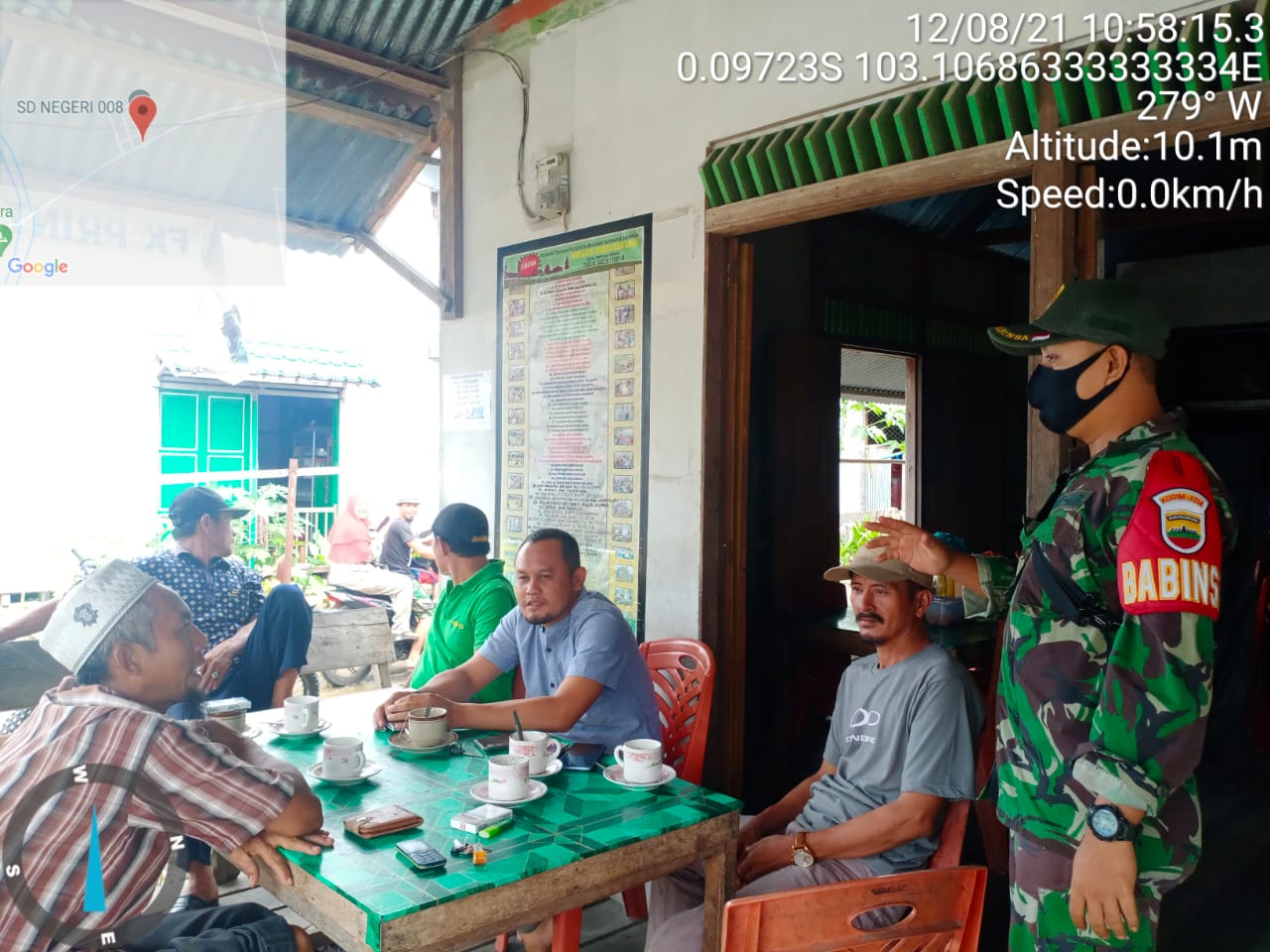 Hari ini Babinsa  Koramil 05/Gas,Serda  Guntur Sempurna melaksanakan komsos tentang  penegakkan disiplin protokol kesehatan Kamis (12/08/2021)