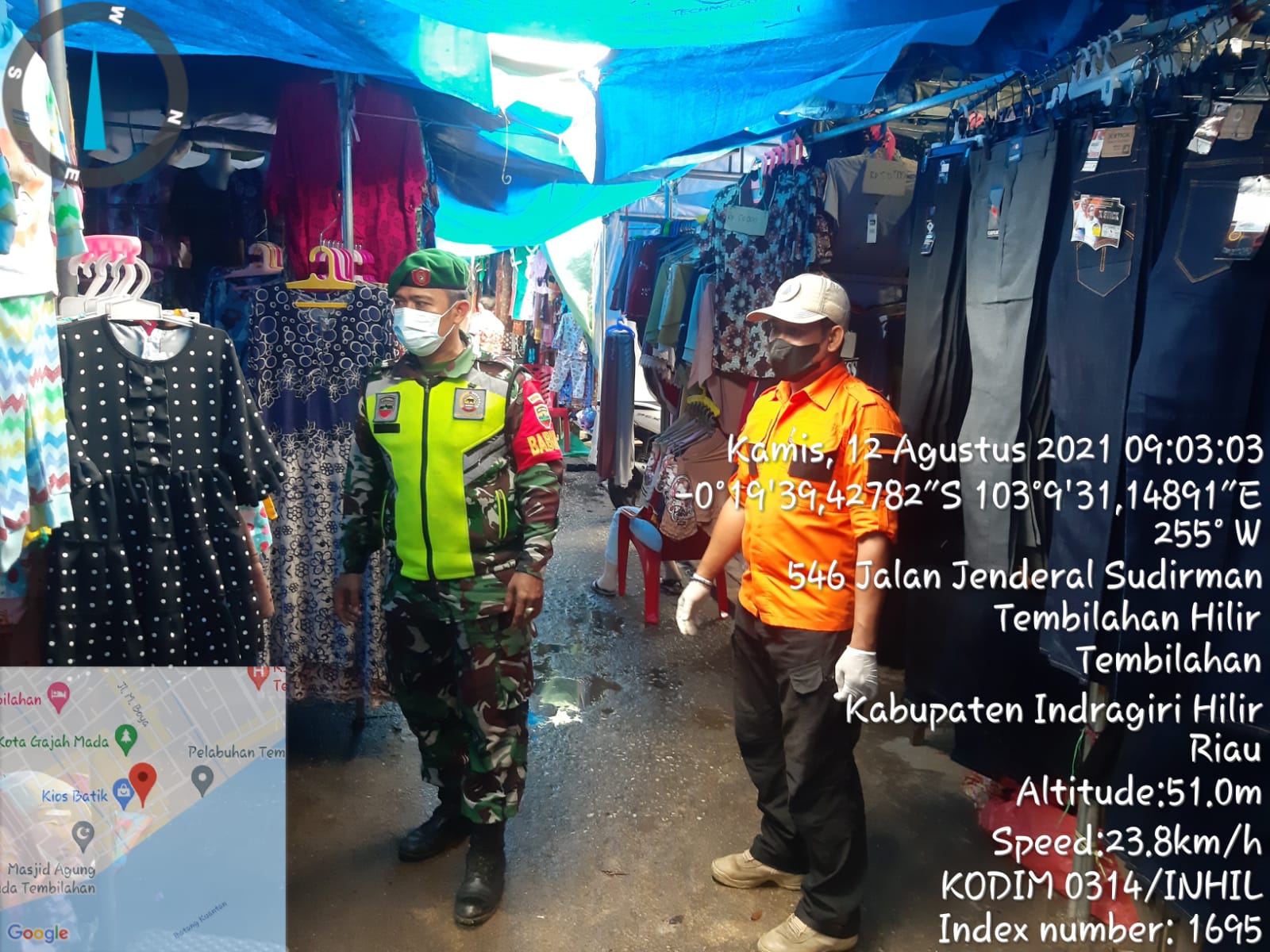 Dalam pelaksanaannya Sertu Surahman Babinsa Koramil 01/Tembilahan  bersama Tim Gugus Jalankan Protokol Penegakkan Disiplin di Pos Pasar Air Mancur Kamis (12/08/2021)
