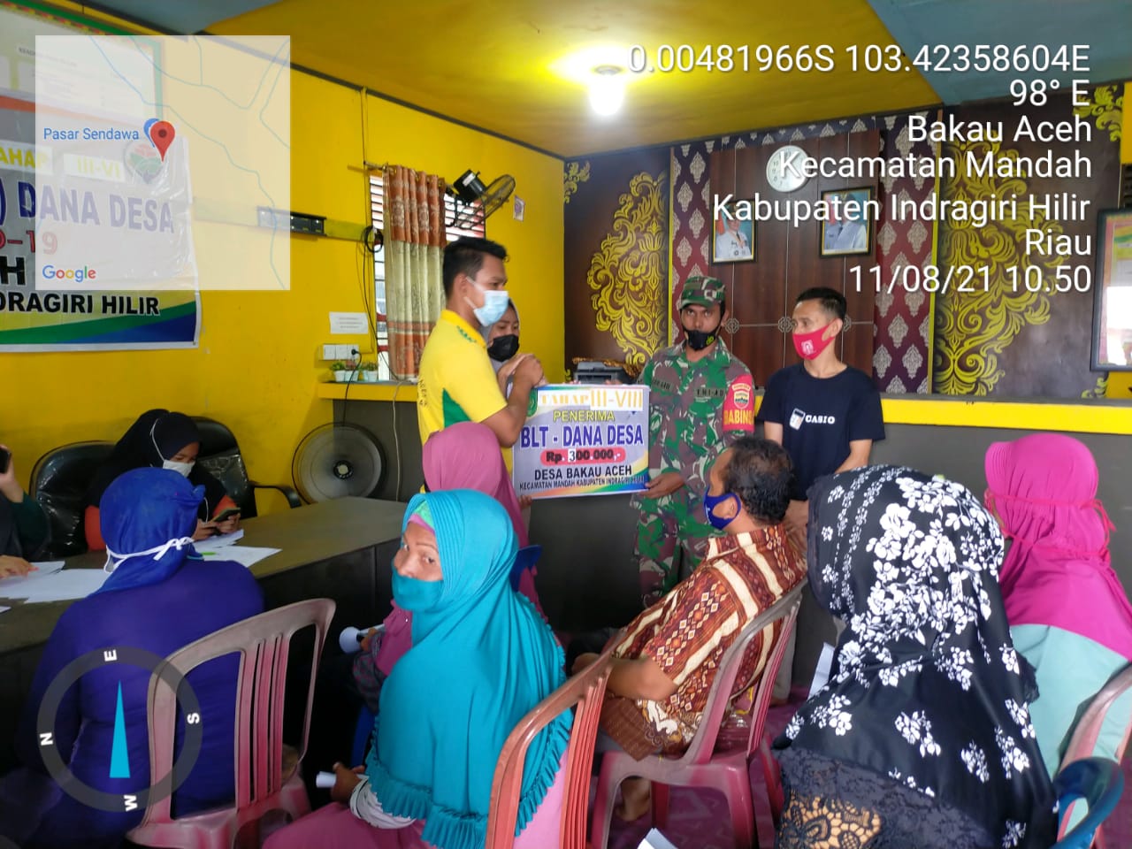 Bantuan diberikan kepada 114 KK dengan disaksikan Sekdes Bakau Ace,Babinsa Serda Tulus Lumban Gaol,BPD,Pendamping Lokal Desa dan