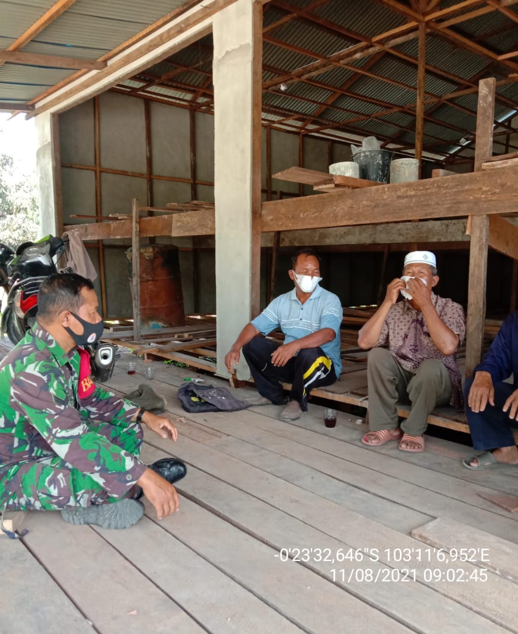 SERIBUPARITNEWS.COM,MANDAH - Sebagai Langkah Antisipasi dini cegah covid-19, Babinsa Seberang Tembilahan  selatan Sertu M.yasin Koramil 01/ Tembilahan Gencar Melaksanakan Komsos bersama Tokoh Masyarakat kusno Rabu (10/08/2021)