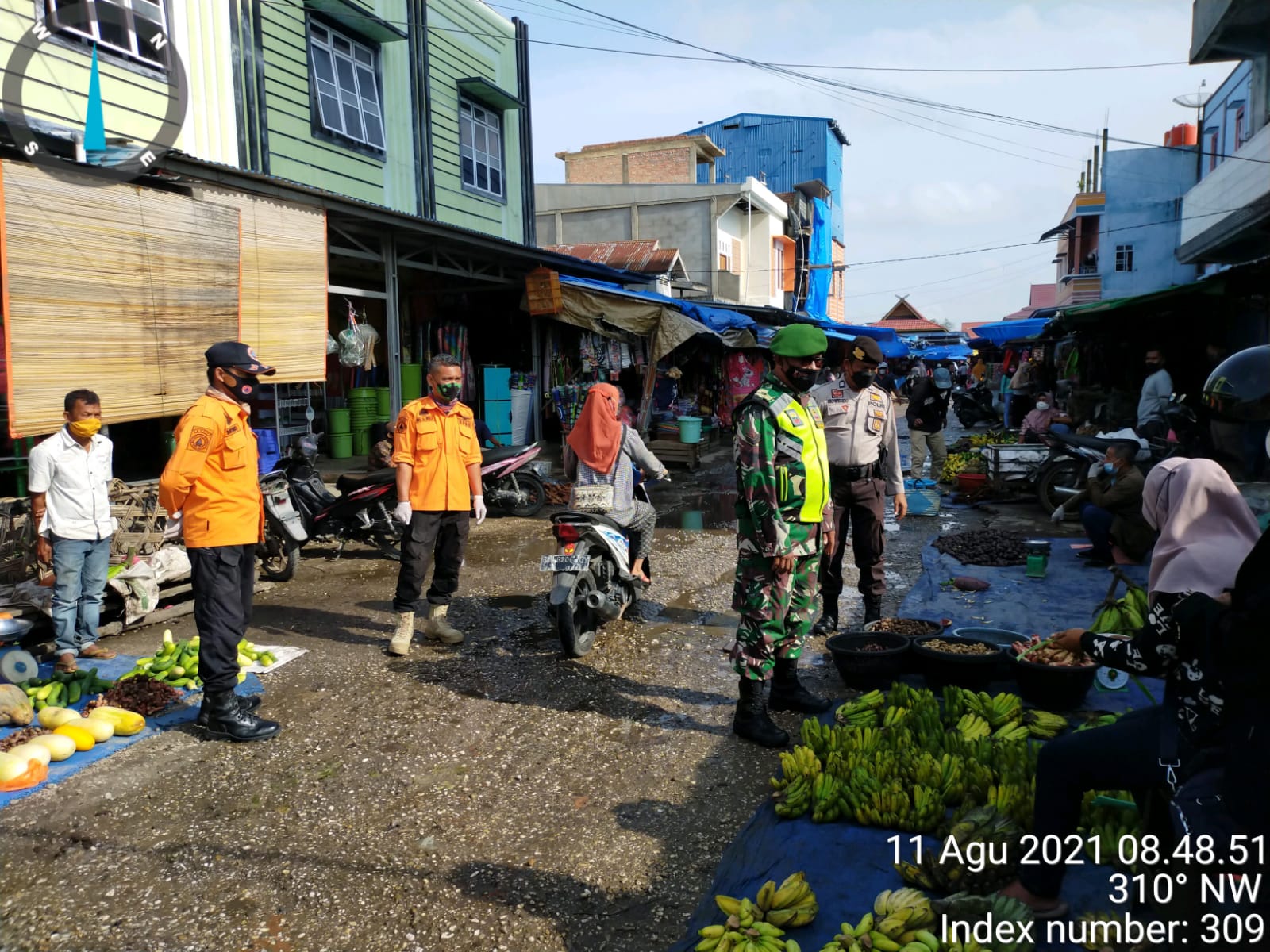 SERIBUPARITNEWS.COM, TEMBILAHANHULU - Sertu Khairunnas Babinsa Koramil 01/Tembilahan Bersama Satpol PP dan BPBD Inhil Melaksanakan Penegakkan Disiplin Protokol Kesehatan Rabu (11/08/2021)