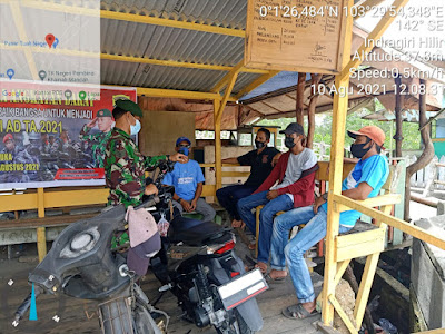 Babinsa Koramil 08/Mandah Kodim 0314/Inhil Serka H.Situmorang Melaksanakan kegiatan bersama warga komsos tentang penerimaan masuk TNI -AD Selasa (10/08/2021)