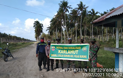 SERIBUPARITNEWS.COM, PULAUBURUNG - Sebagai Upaya penanggulangan Kebakaran Hutan dan lahan, Babinsa Koramil 11/Pulau Burung Serda Siswanto dan warga setempat melaksanakan kegiatan patroli dan sosialisasi karhutla secara Berkala dan Terfokus Selasa (10/08/2021)