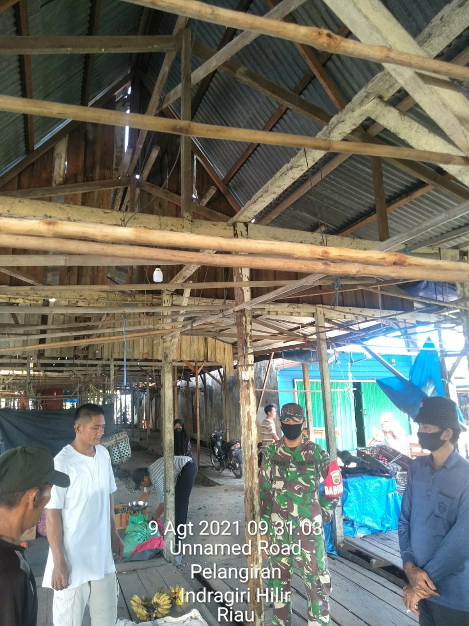 Kopda Togatrop Babinsa Koramil 10/Pelangiran Kodim 0314/Inhil Penegakan disiplin Protokes dan Himbauan ke warga Kelurahan Pelangiran