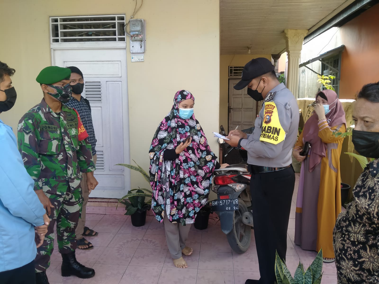 Sertu Jondri Pasaribu Babinsa Koramil 01/Tembilahan melaksanakan  Kegiatan Tracing terhadap masyarakat sekitar lingkungan Pasien yang terkonfirmasi Positif Covid- 19 Jumat  (06/08/2021)