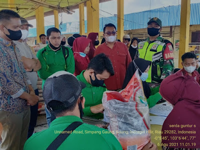 Pembagian bantuan beras PPKM dilaksanakan di Pasar Desa Simpang Gaung Kecamatan Gaung