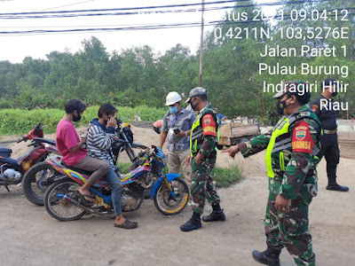 SERIBUPARITNEWS.COM, PULAUBURUNG - Sebagai Upaya Uji Balistik Peran Komando Kewilayahan di Masa Pandemik, Babinsa Koramil 11/Pulau Burung  dipimpin oleh Sertu Yanuarsyah melaksanakan kegiatan penegakkan disiplin Protokol Kesehatan Covid-19 Jumat (06/08/2021)